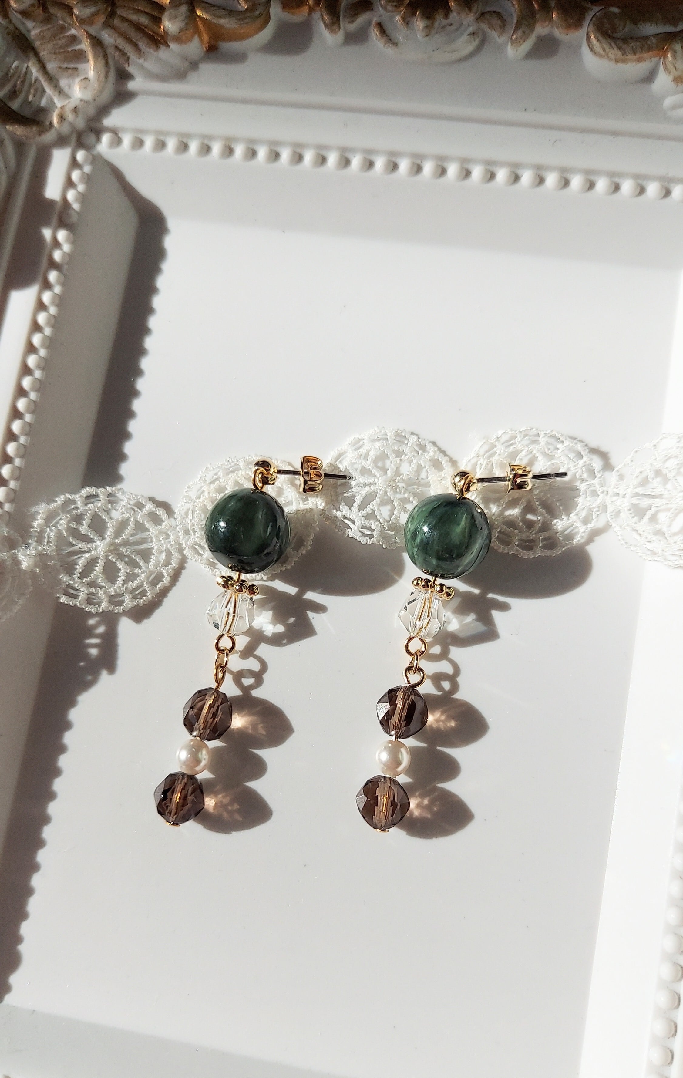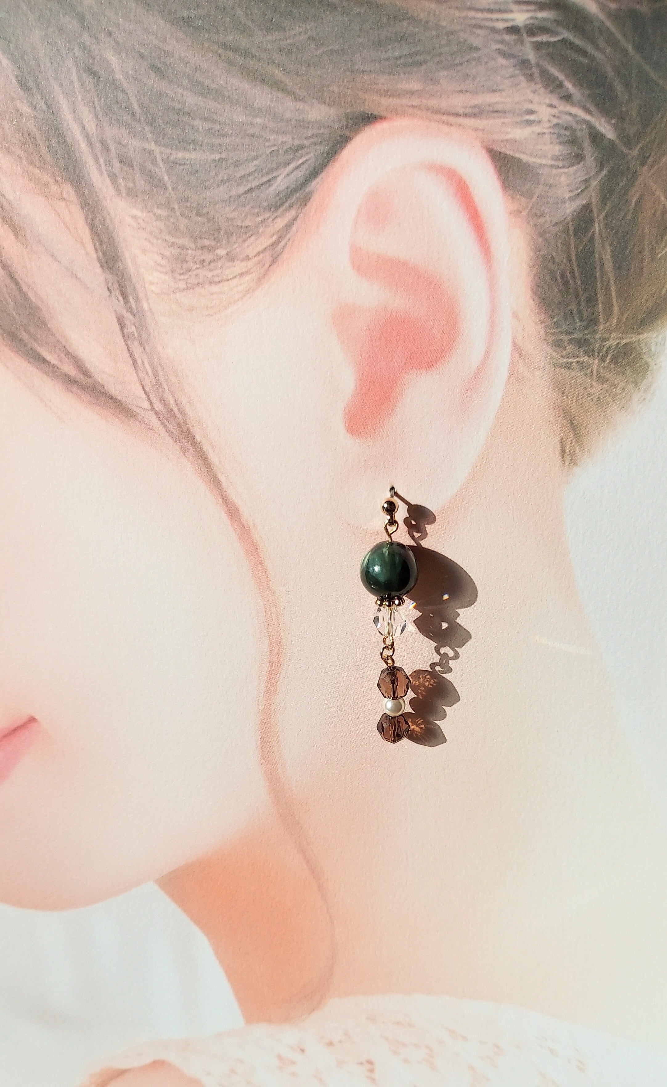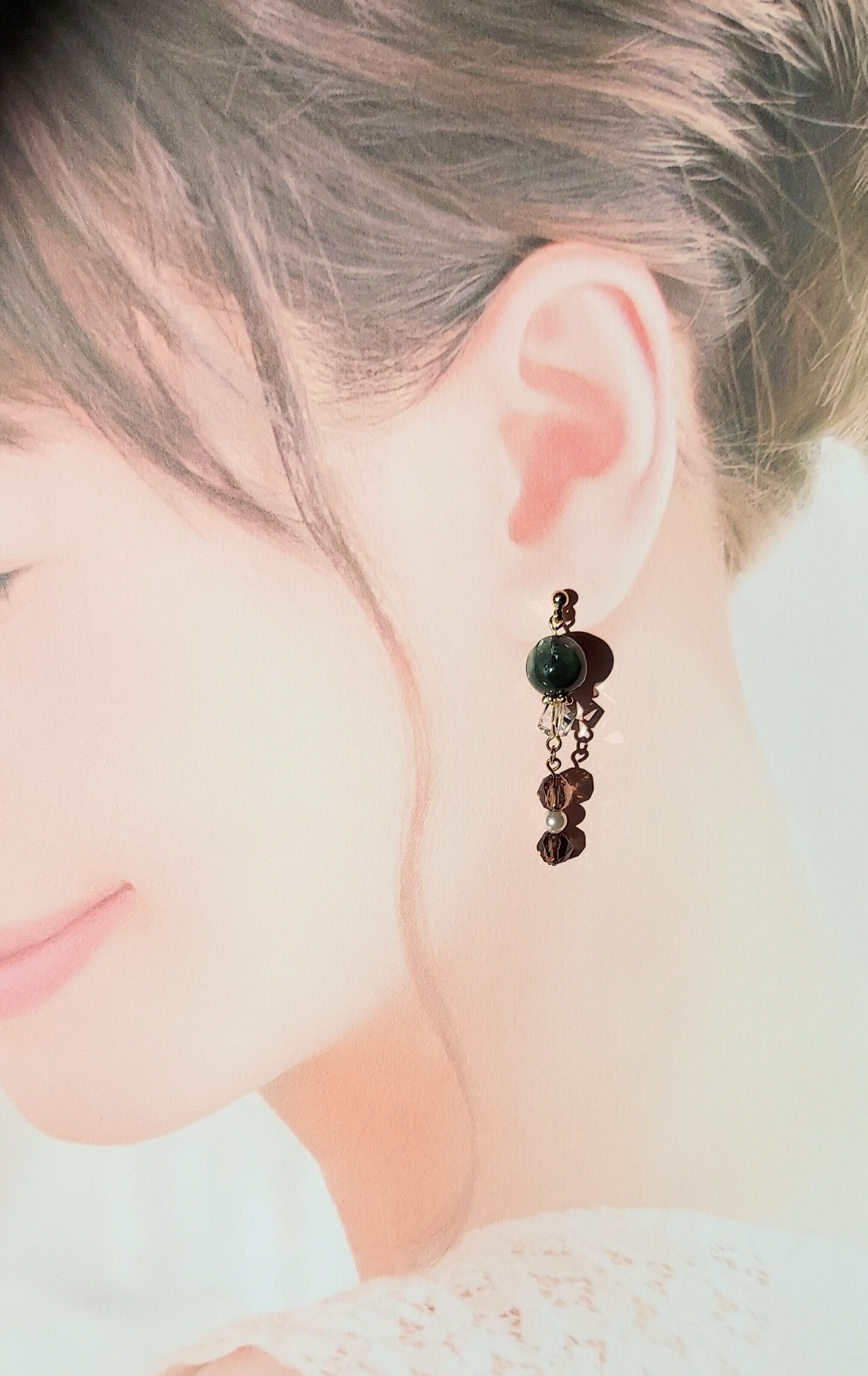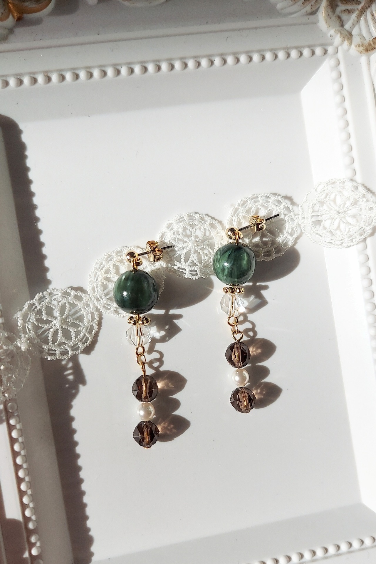 ◆素材:セラフィナイト、クリアクオーツ、スモーキークォーツ、金具、スペーサー、樹脂パール
