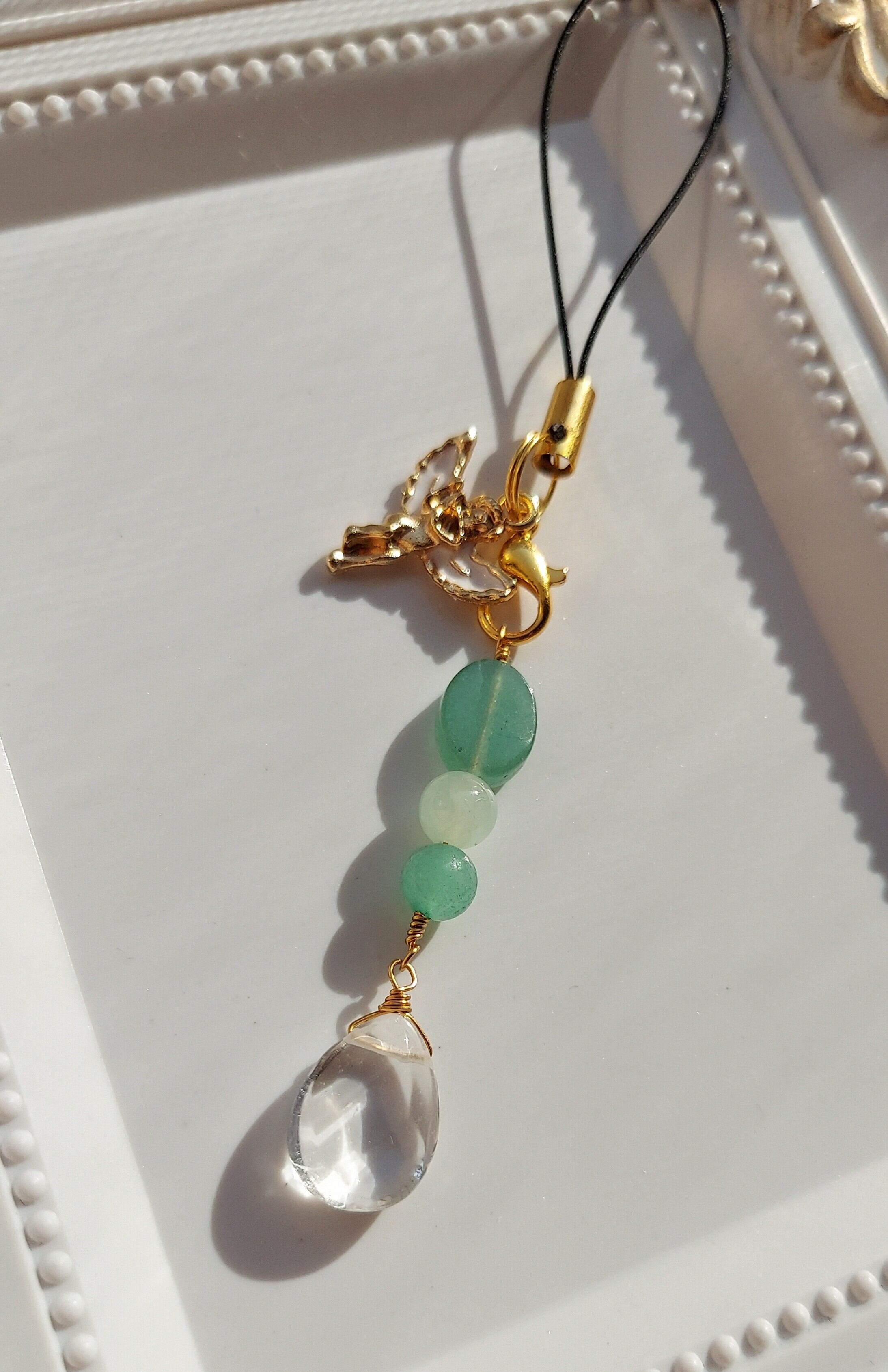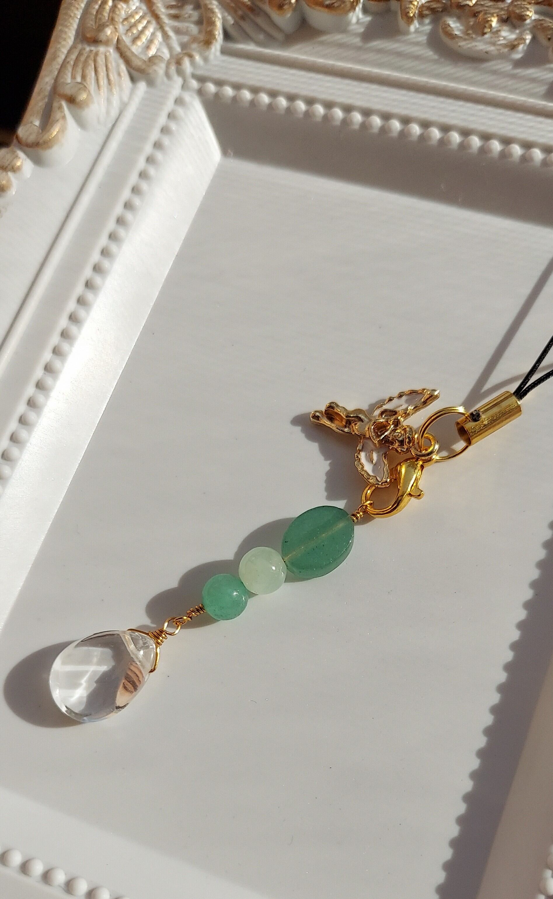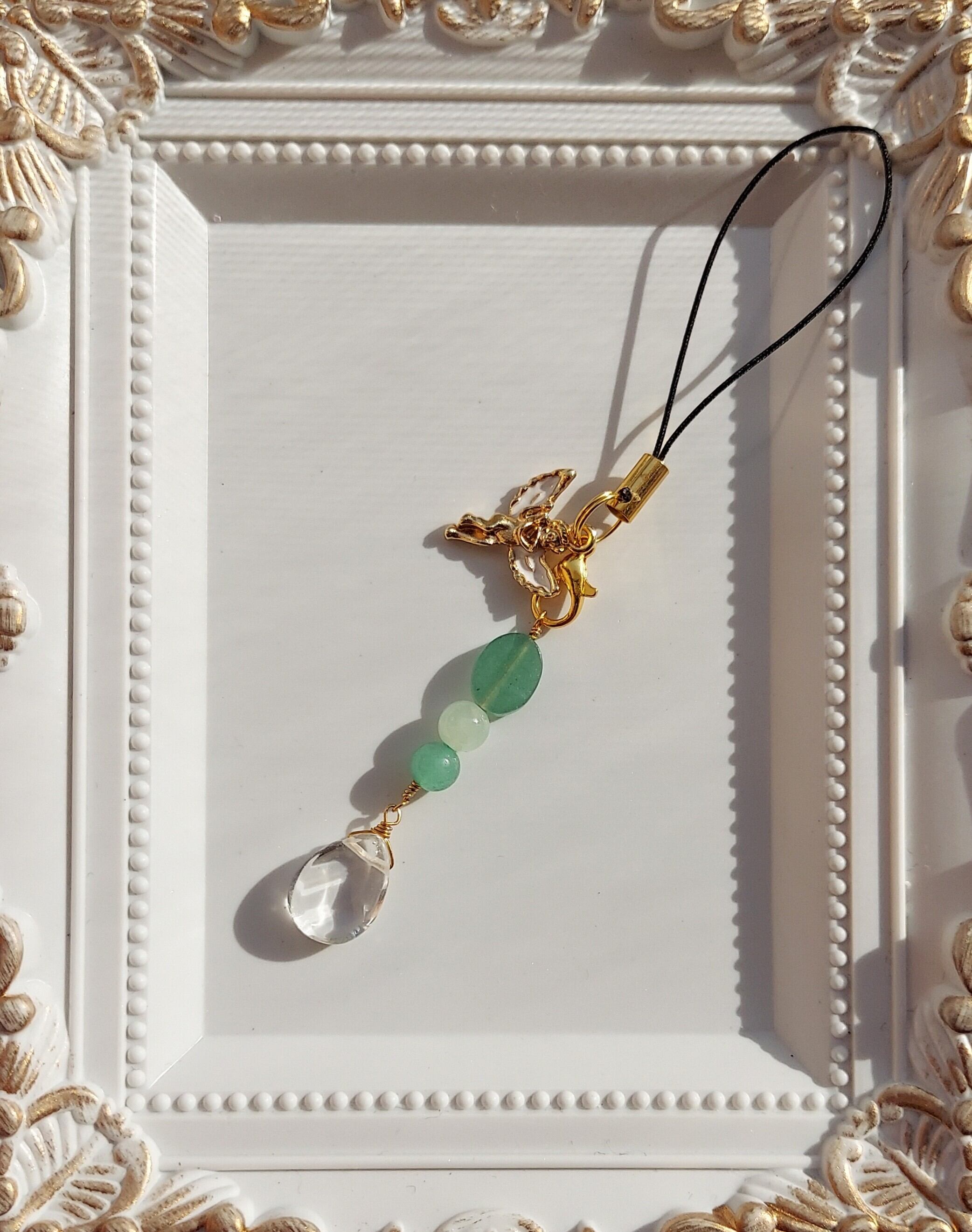 ◆素材:アベンチュリン(楕円、丸玉)、プレナイト、ドロップ型水晶、ワイヤー、天使チャーム、ストラップ