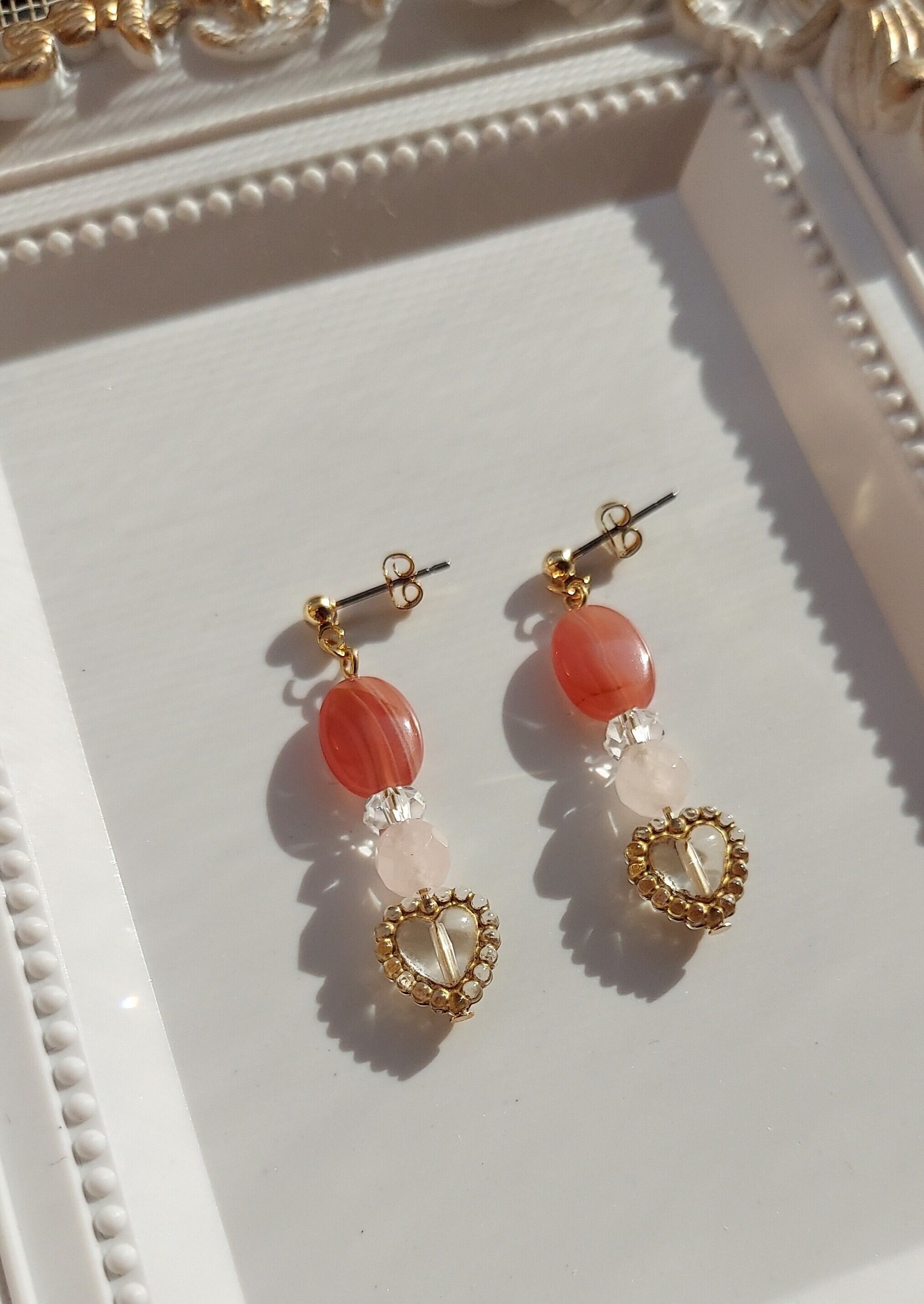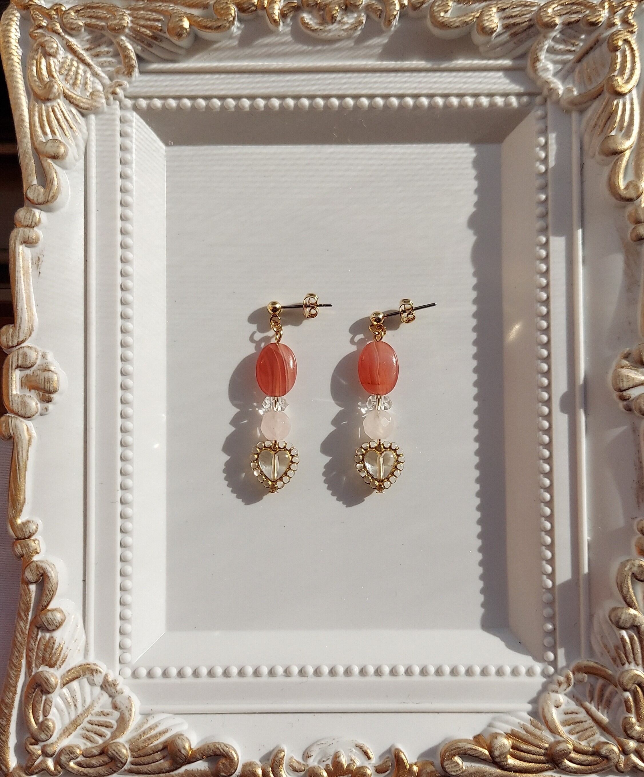 Happy Love ローズクオーツ&インカローズ ピアス/イヤリング