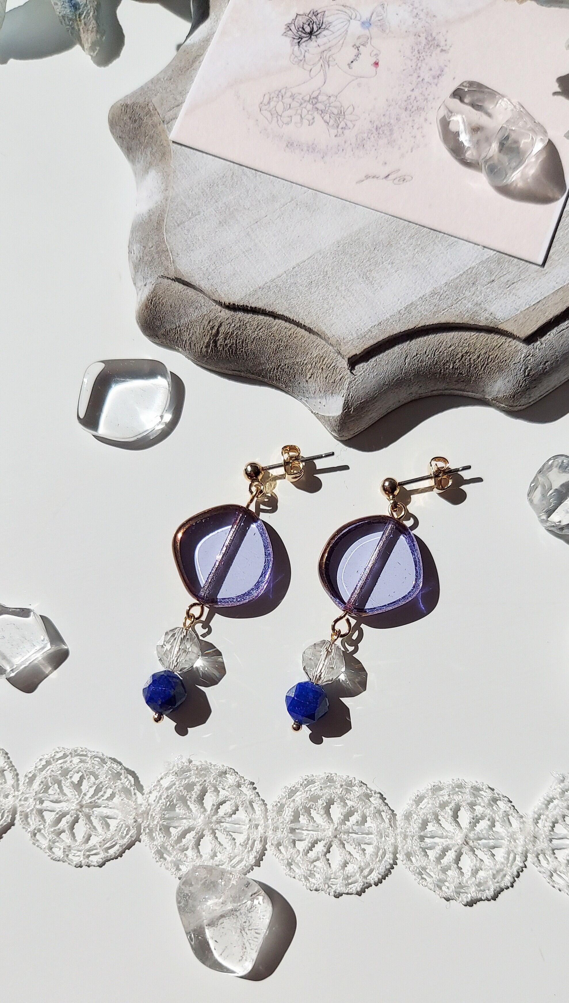 青紫色のパーツと、ラピスラズリ、