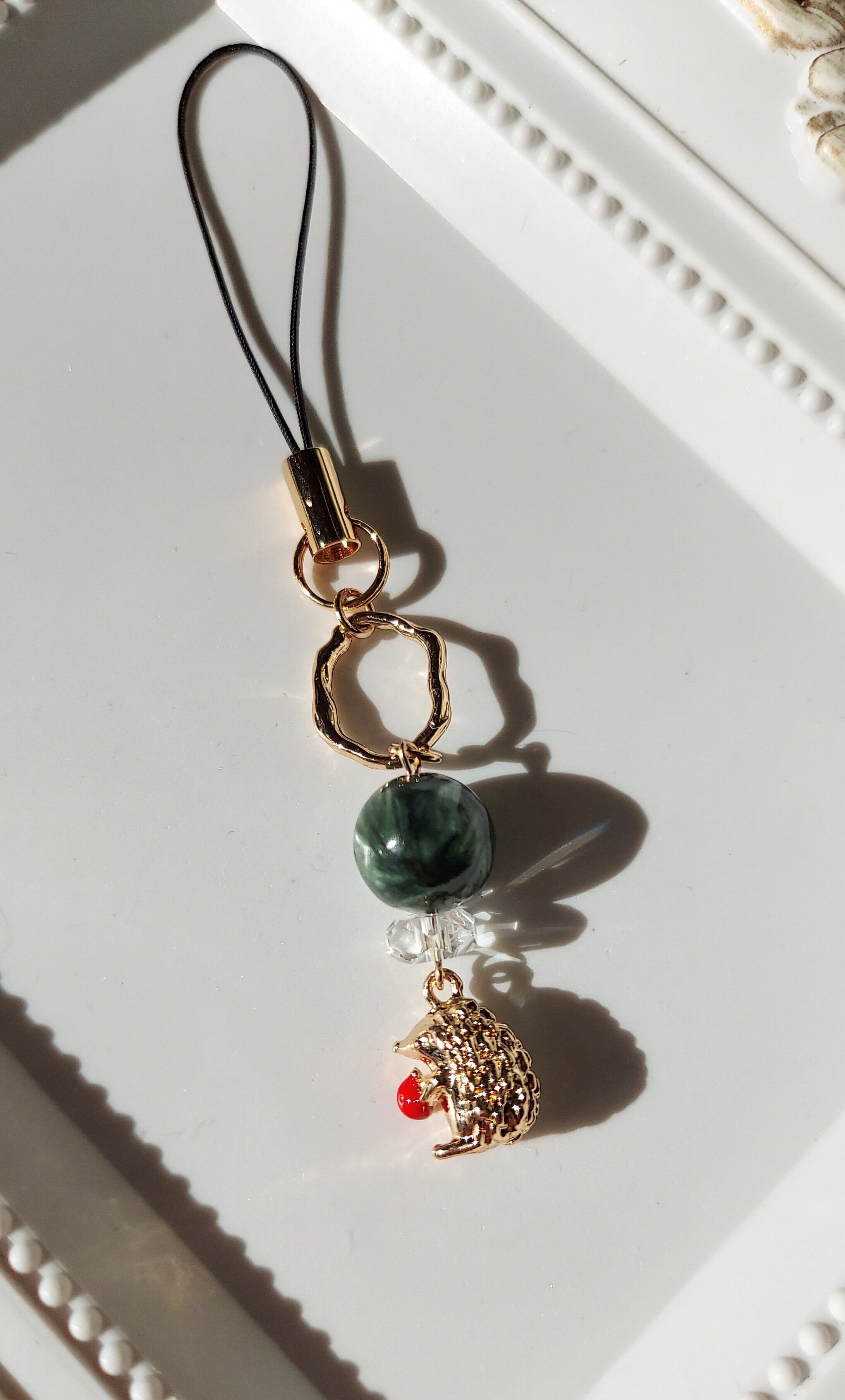 セラフィナイト&ハリネズミ 癒しストラップ♡