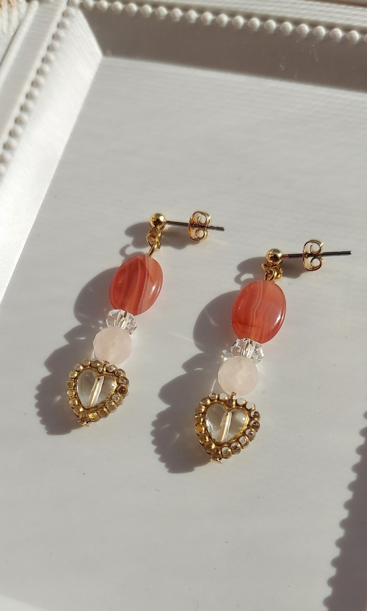 ★再入荷★Happy Love ローズクオーツ&インカローズ ピアス/イヤリング