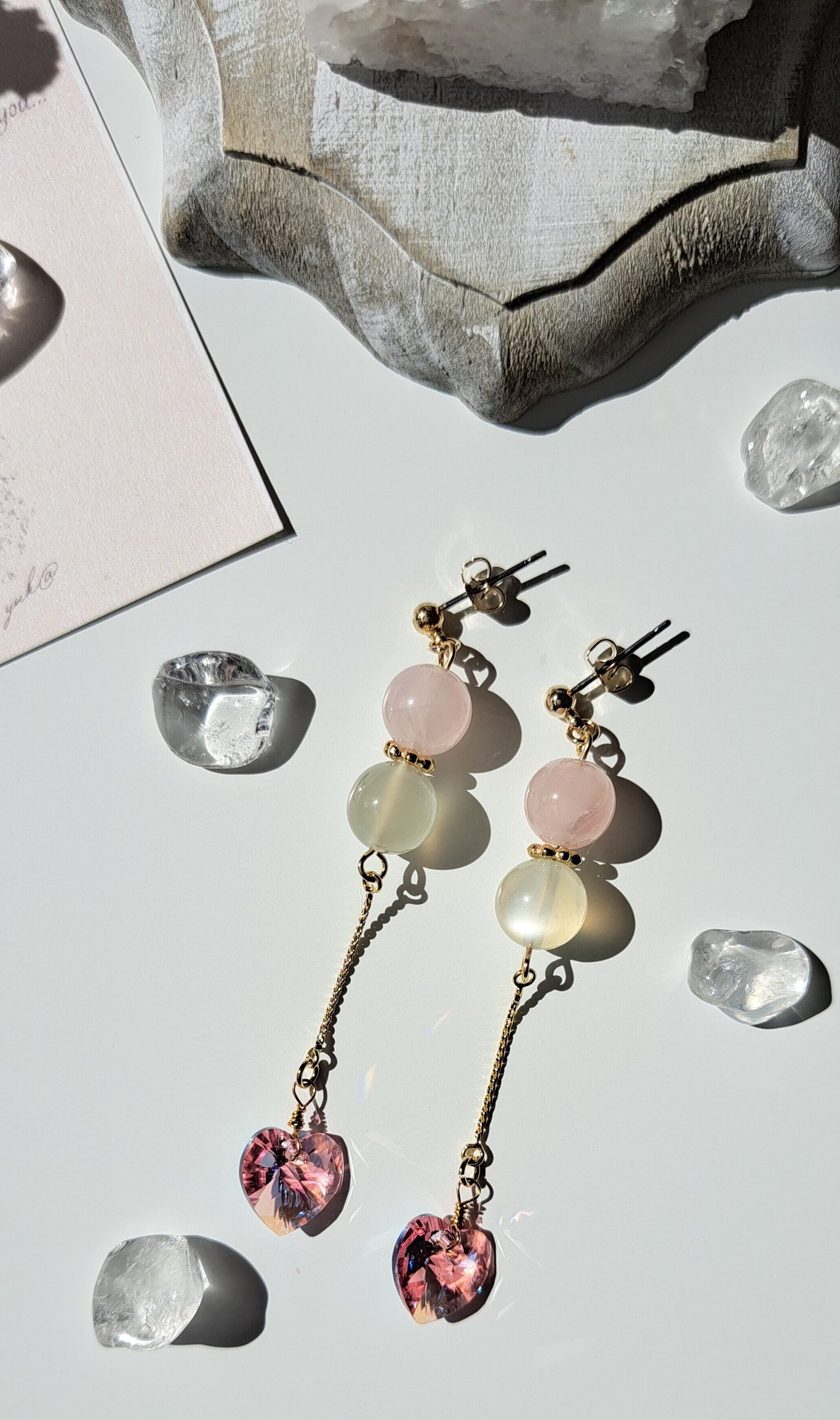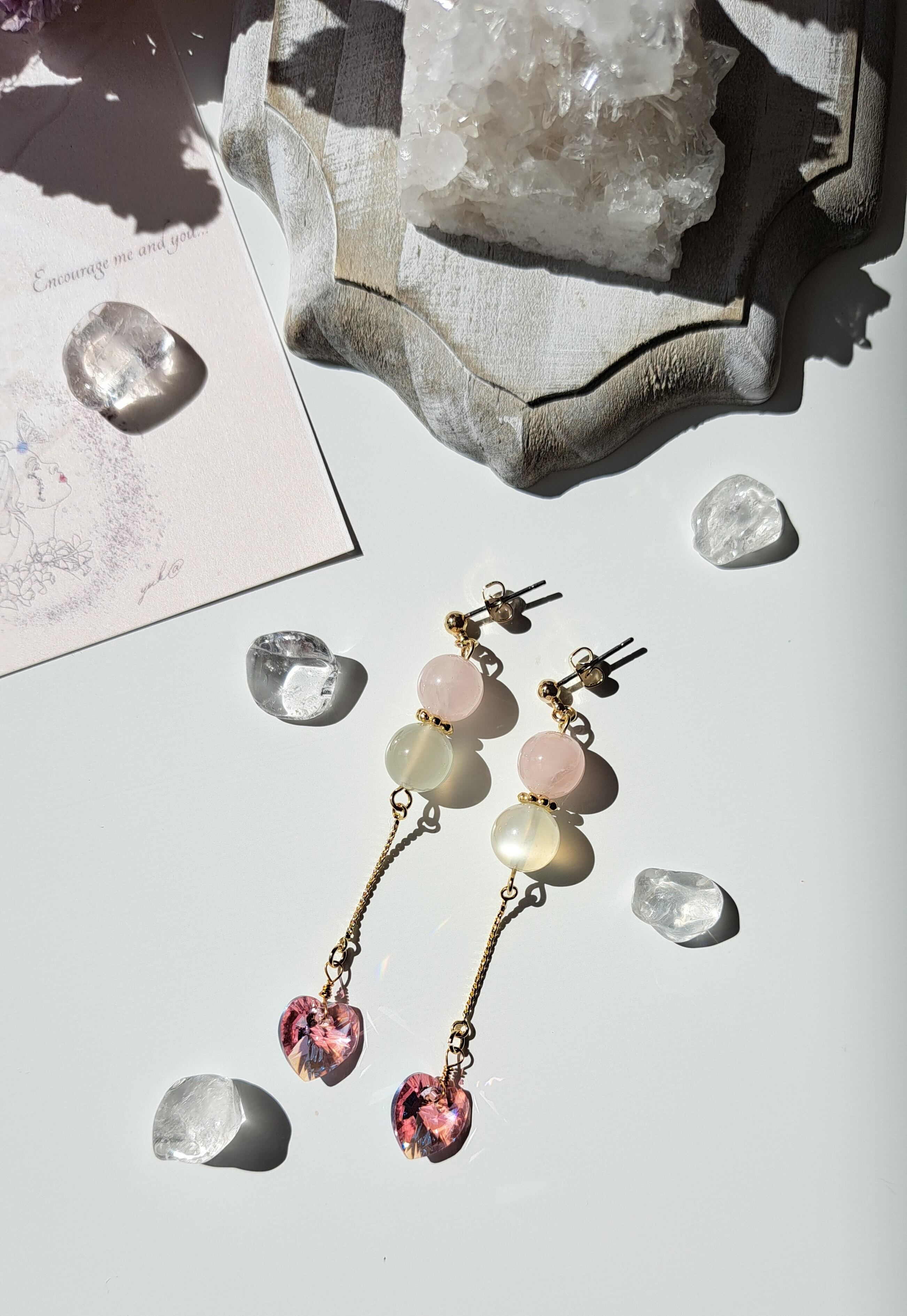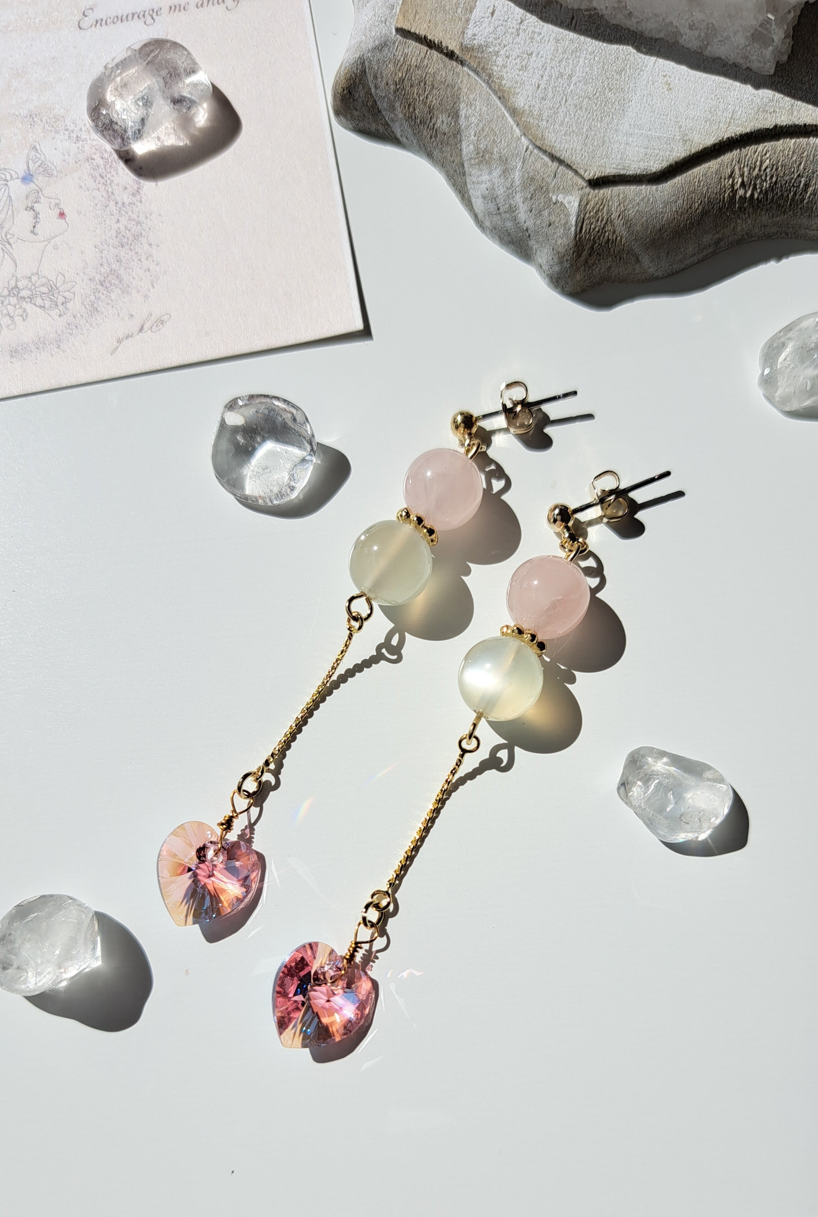 〜Love yourself~ ローズクオーツ&ムーンストーン ピアス/イヤリング